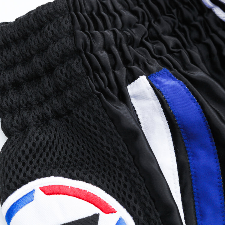 Made of satin material these shorts feel instantly comfortable allowing a full range of motion in the legs. The side panels add a stylish edge to the retro Muay Thai feel whilst being made of mesh to keep you cool during training.